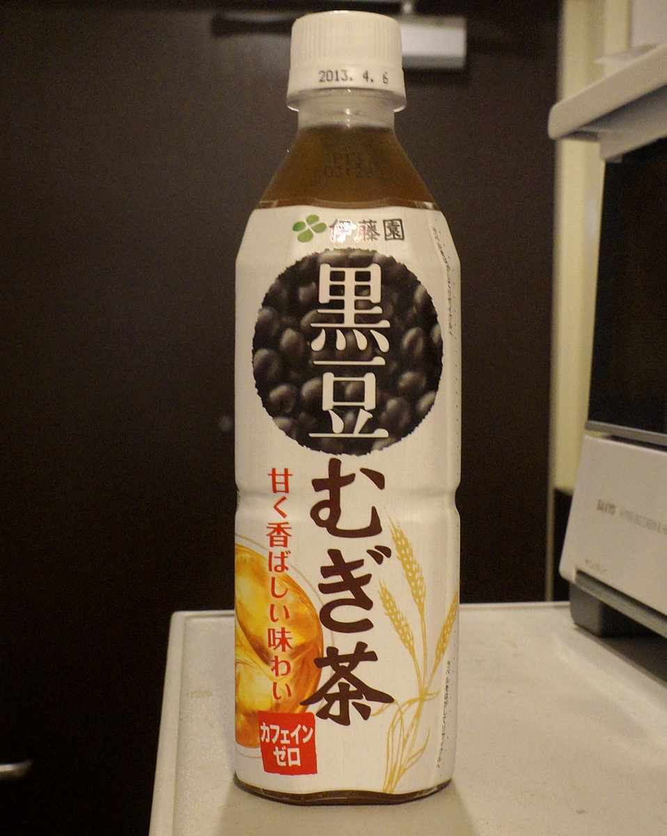 今日の飲み物は株式会社伊藤園発売の黒豆むぎ茶甘く香ばしい味わいカフェインゼロです。