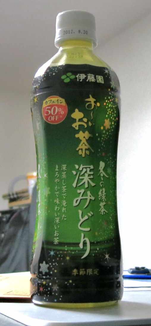 今日の飲み物は、株式会社伊藤園発売のカフェイン50%OFF お~いお茶 冬の緑茶深みどり