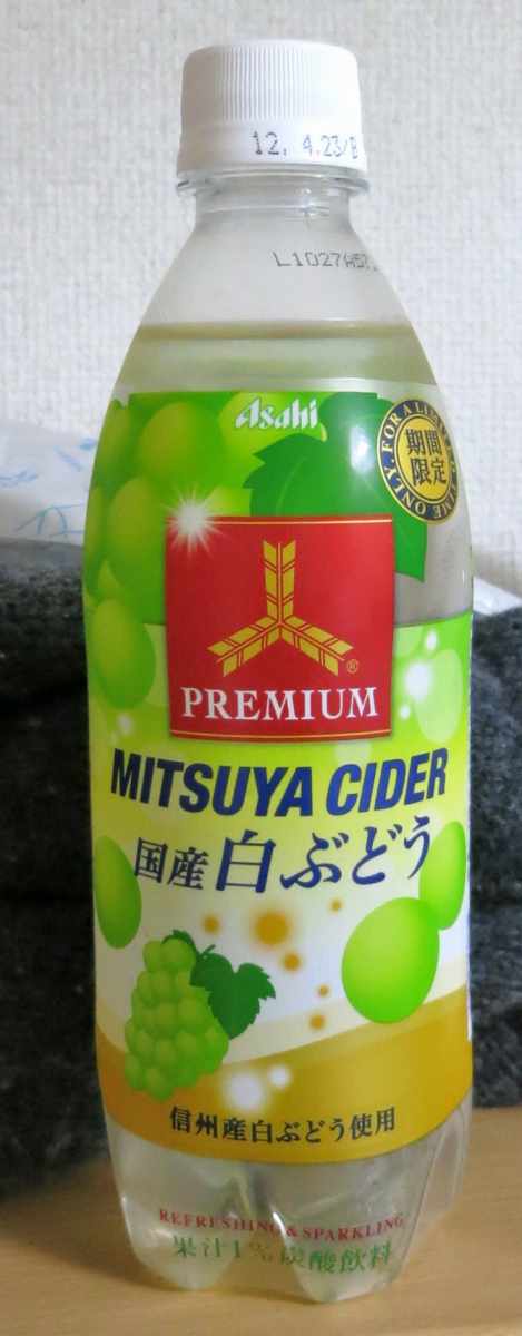 今日の飲み物はアサヒ飲料株式会社発売の期間限定 PREMIUM MITSUYA CIDER
