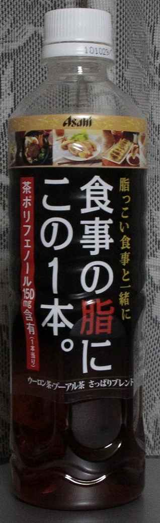 今日の飲み物は、アサヒ飲料株式会社発売の脂っこい食事と一緒に 食事の脂にこの1本。