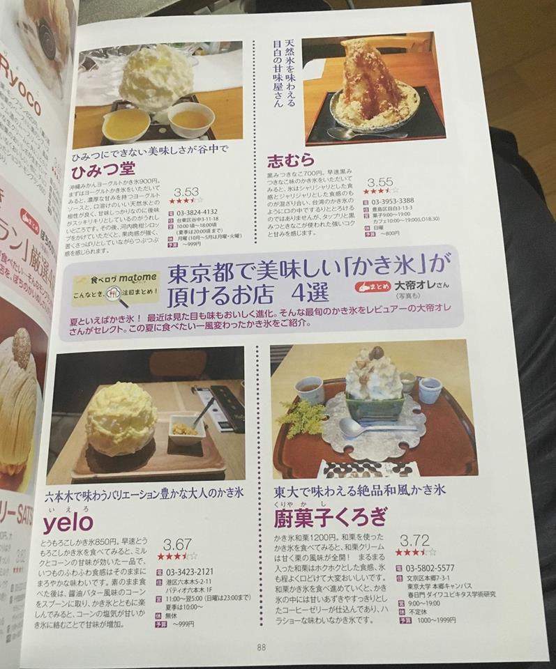 掲載されたのは以前東京で食べた美味しいかき氷のお店をまとめたもので、ページの後ろの方に丸々1ページに渡って掲載されました。