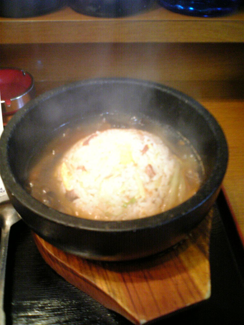 ビビンバのようなに熱した石の丼の中に