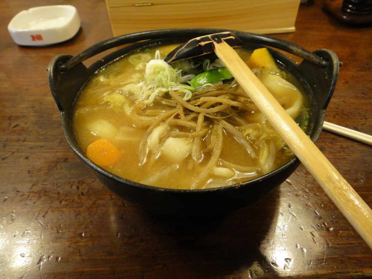 メインのほうとうは太くてもちもちと柔らかい食感です。