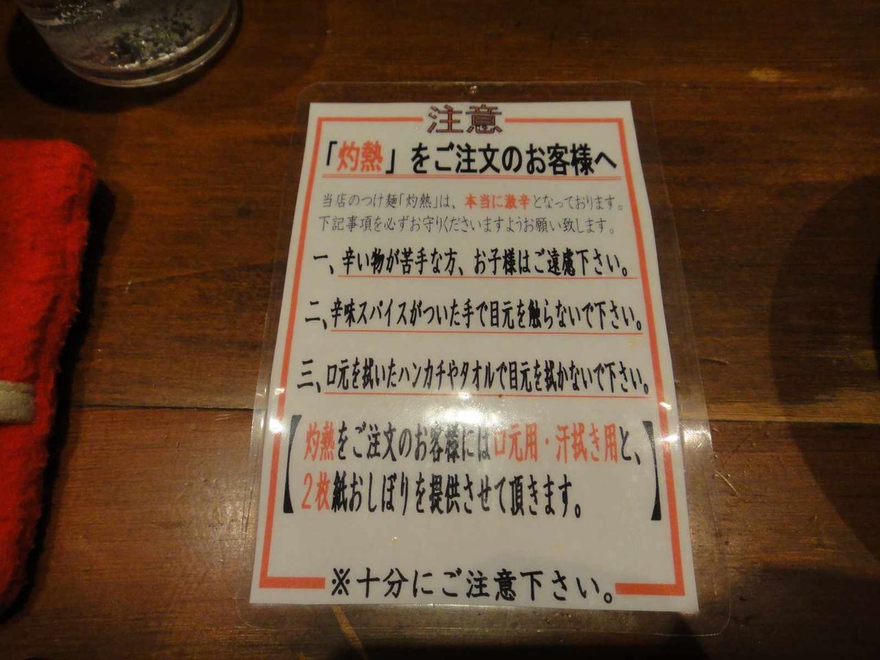 灼熱を注文して程なくして注意書きが書かれたPOPが運ばれてきたので読んでみると