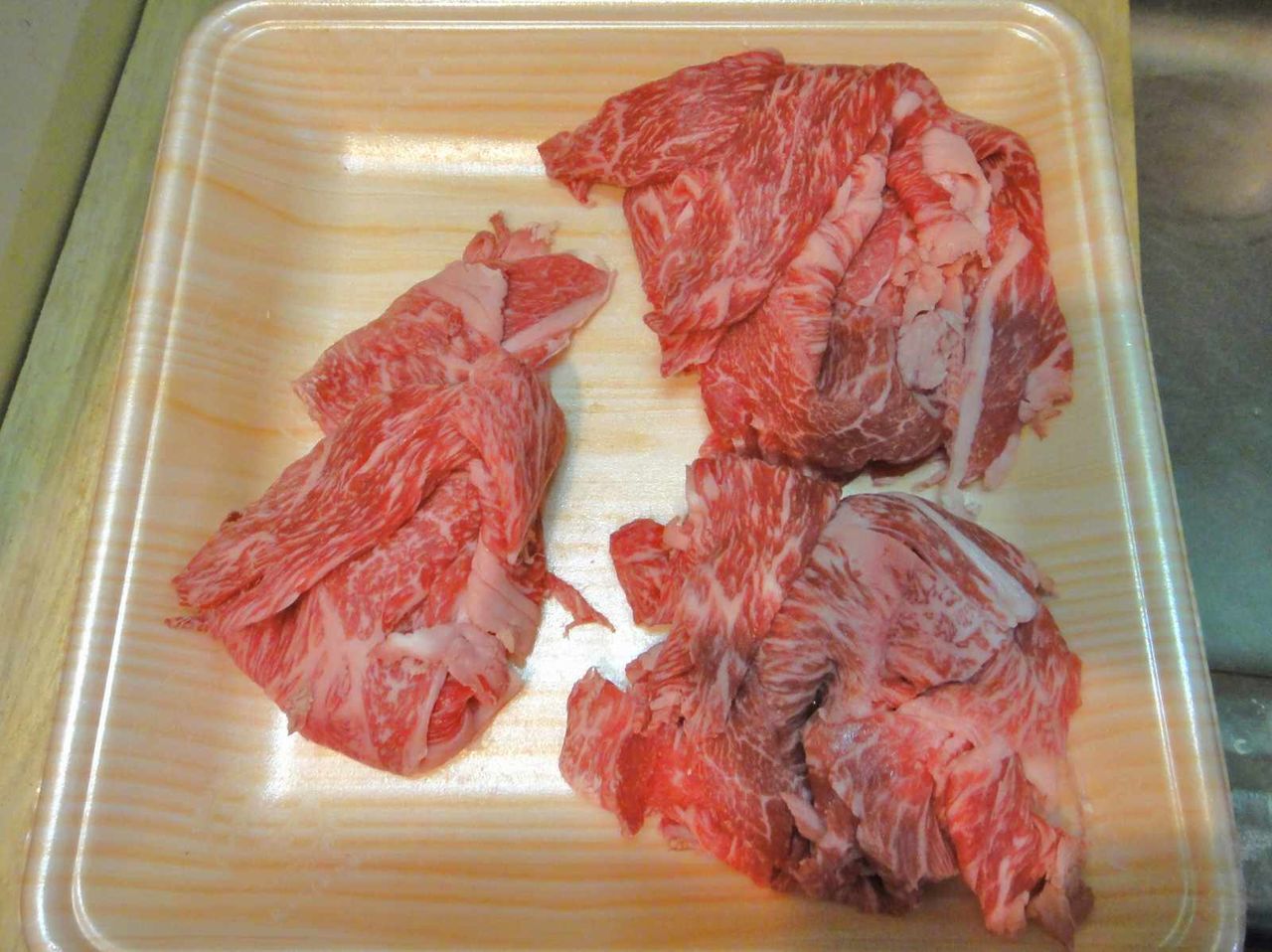 購入した石垣牛の肉を見ると、適度にサシが入って美味しそうです。