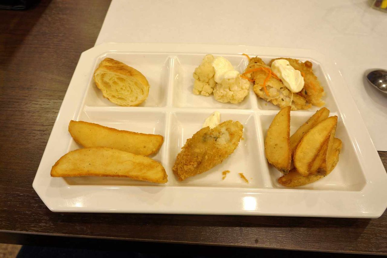 まずは軽くおかずと飲み物を取って席に運んだ後は
