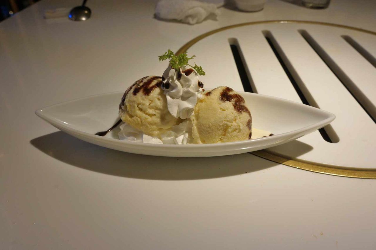 アイスクリームに添えられた生クリームと混ぜて食べると、クリーム分によって