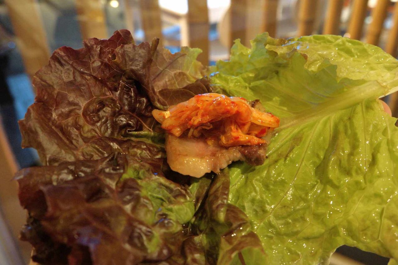 上記写真の様に単品で食すも良し、キムチや葉物野菜と巻いて食べるのも良しですが