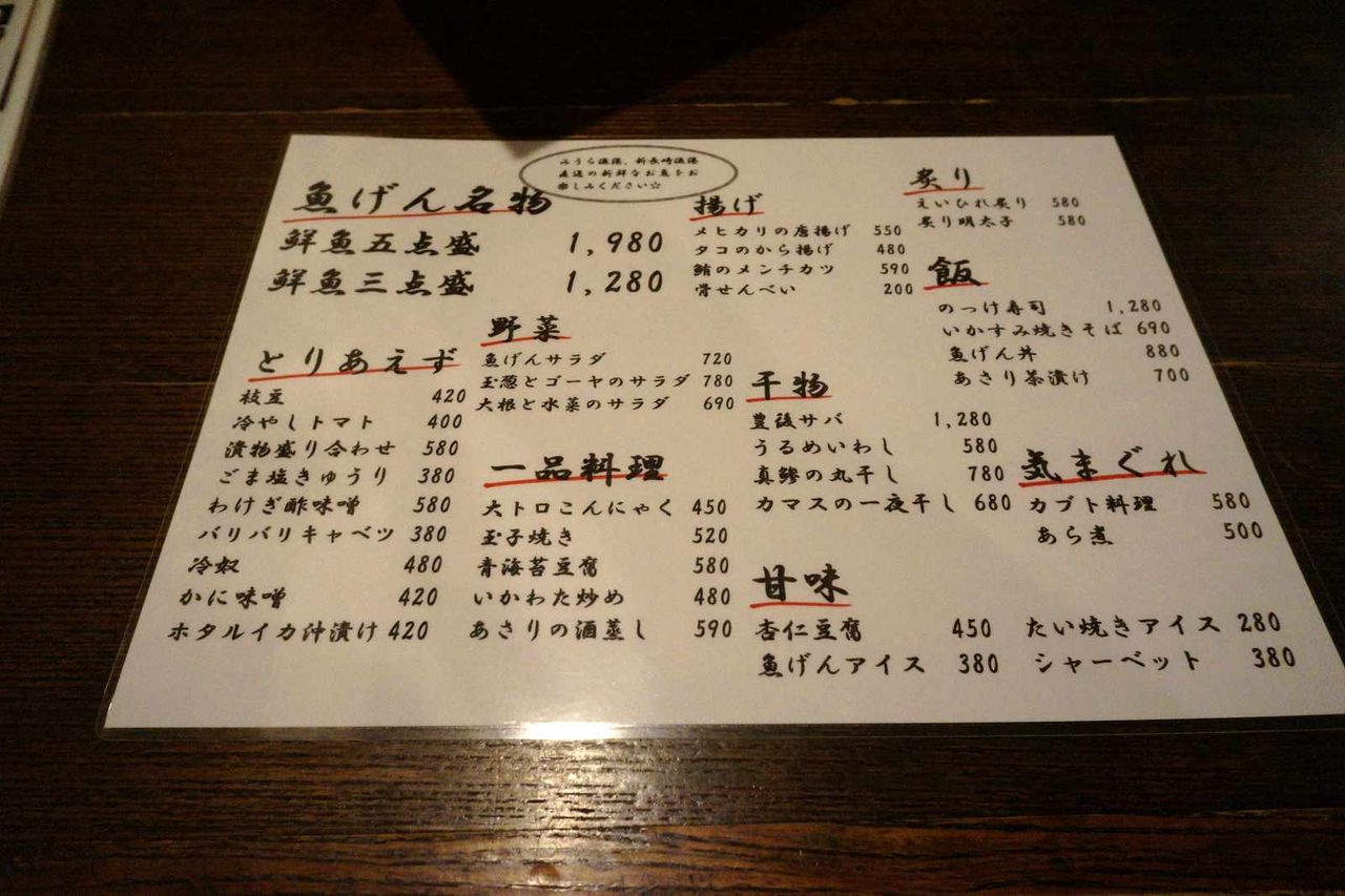 その後魚げんのメニューへと続き、魚以外にも居酒屋料理も取り扱っているようです。