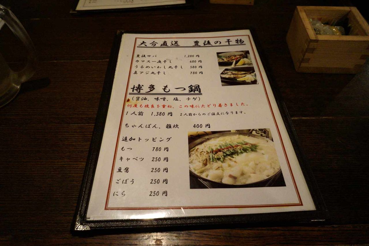 その他のメニュー表には、大分直送豊後の干物や博多モツ鍋