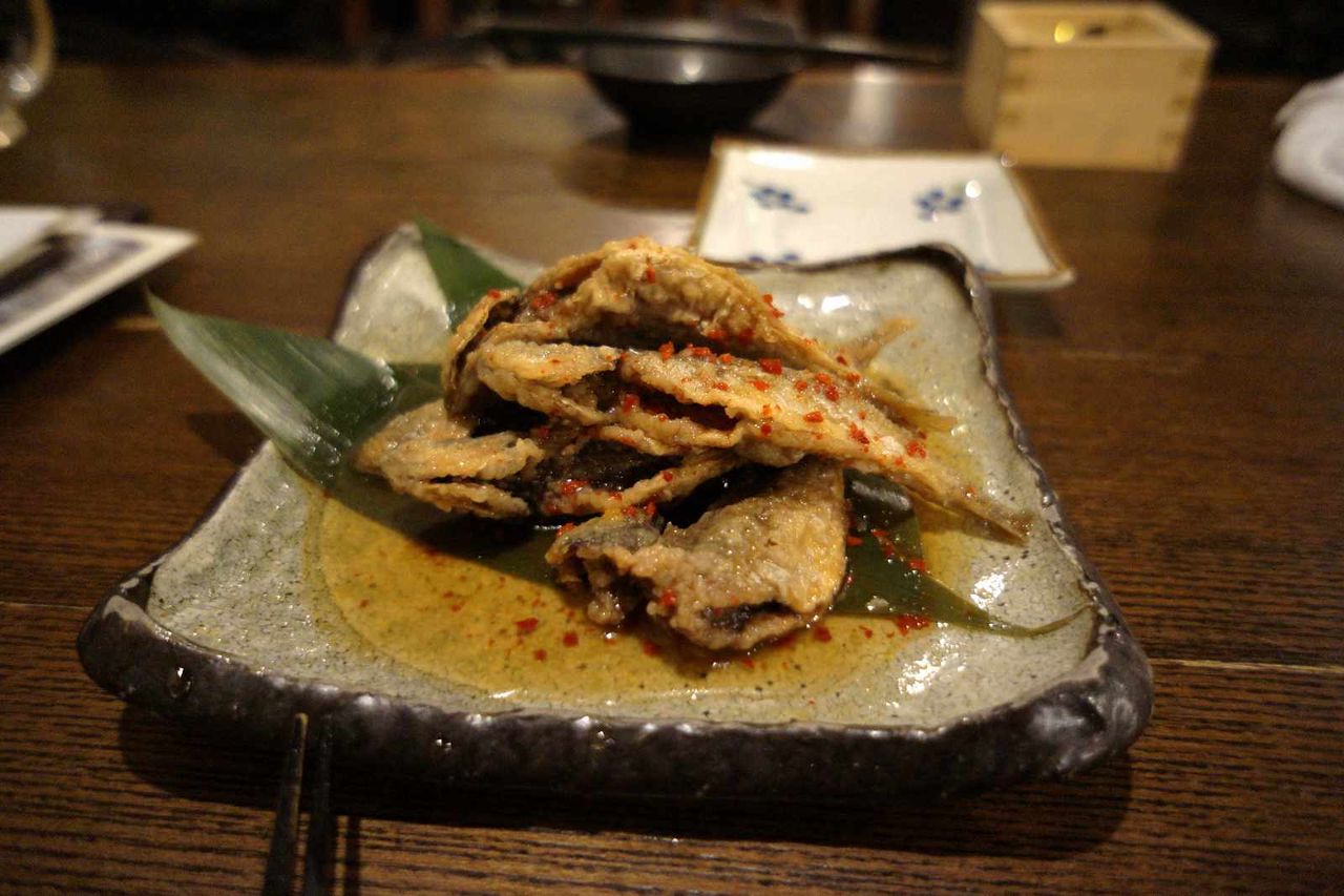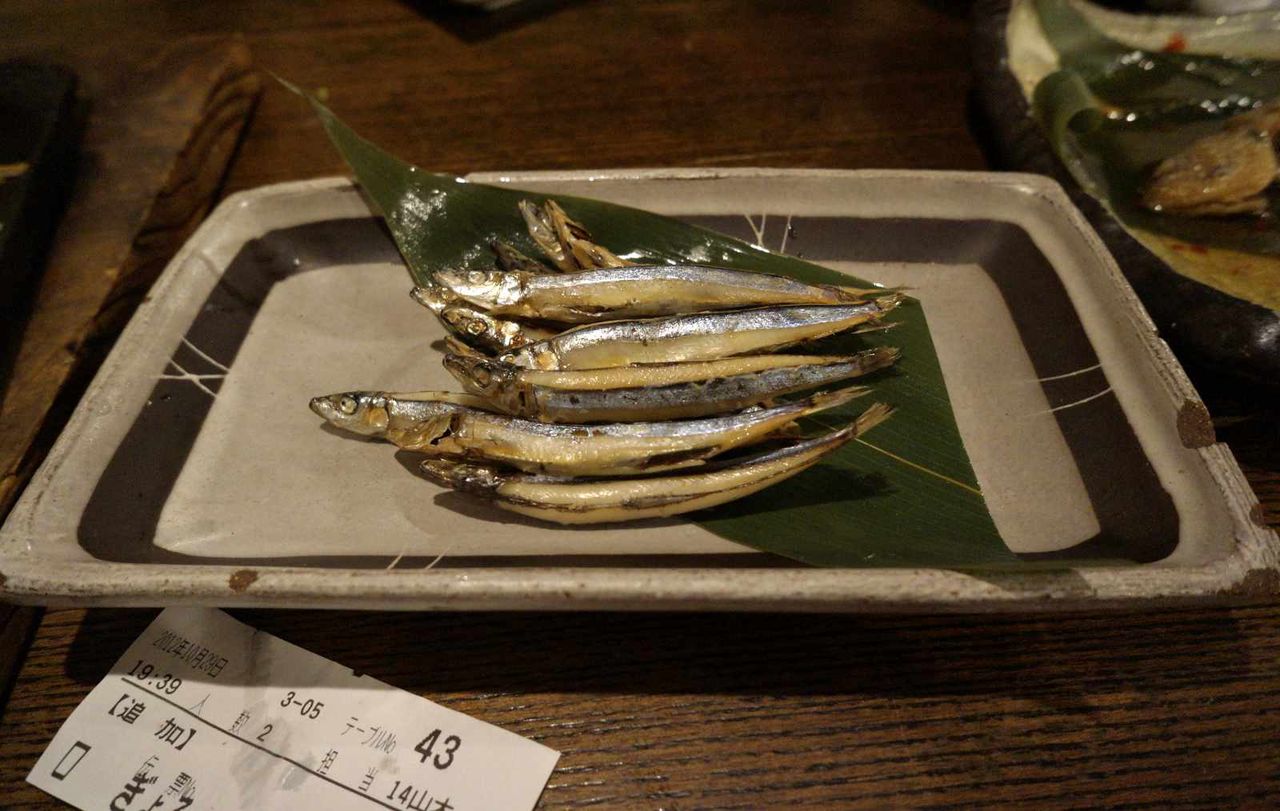 熱々な鶏のセセリ焼きを戴いた後は、鹿児島名物なきびなごを干物にした物を頂き