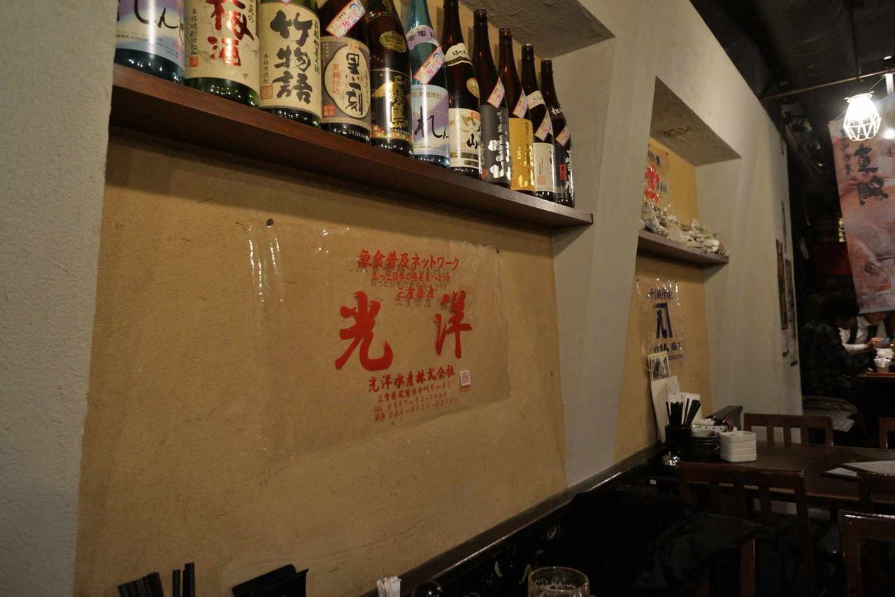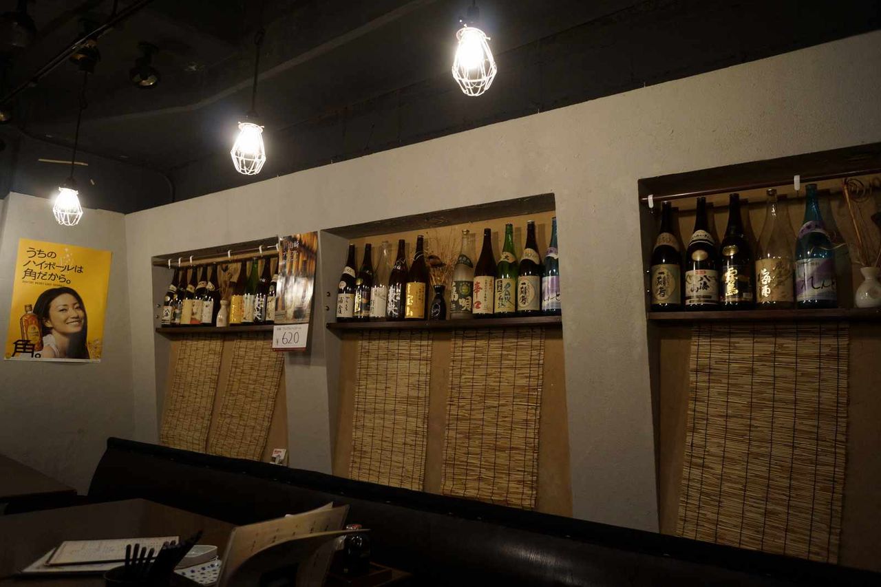 九州料理を出す居酒屋も併設されているので、店内壁面が焼酎の瓶で埋め尽くされています。