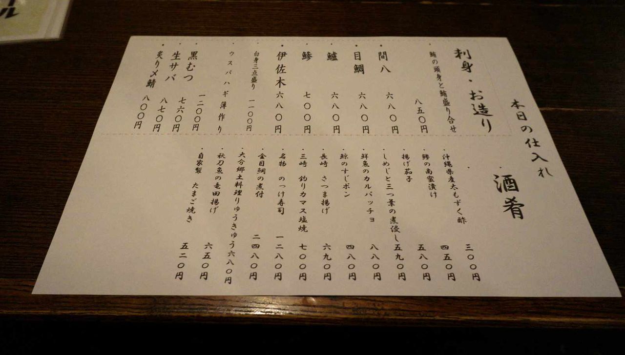 飲み物メニューの後は食事メニューへと続き、まずは本日の仕入れページを見ると