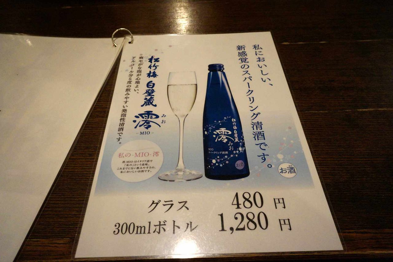 発泡性の日本酒って珍しいかも?とメニュー表を見て思った