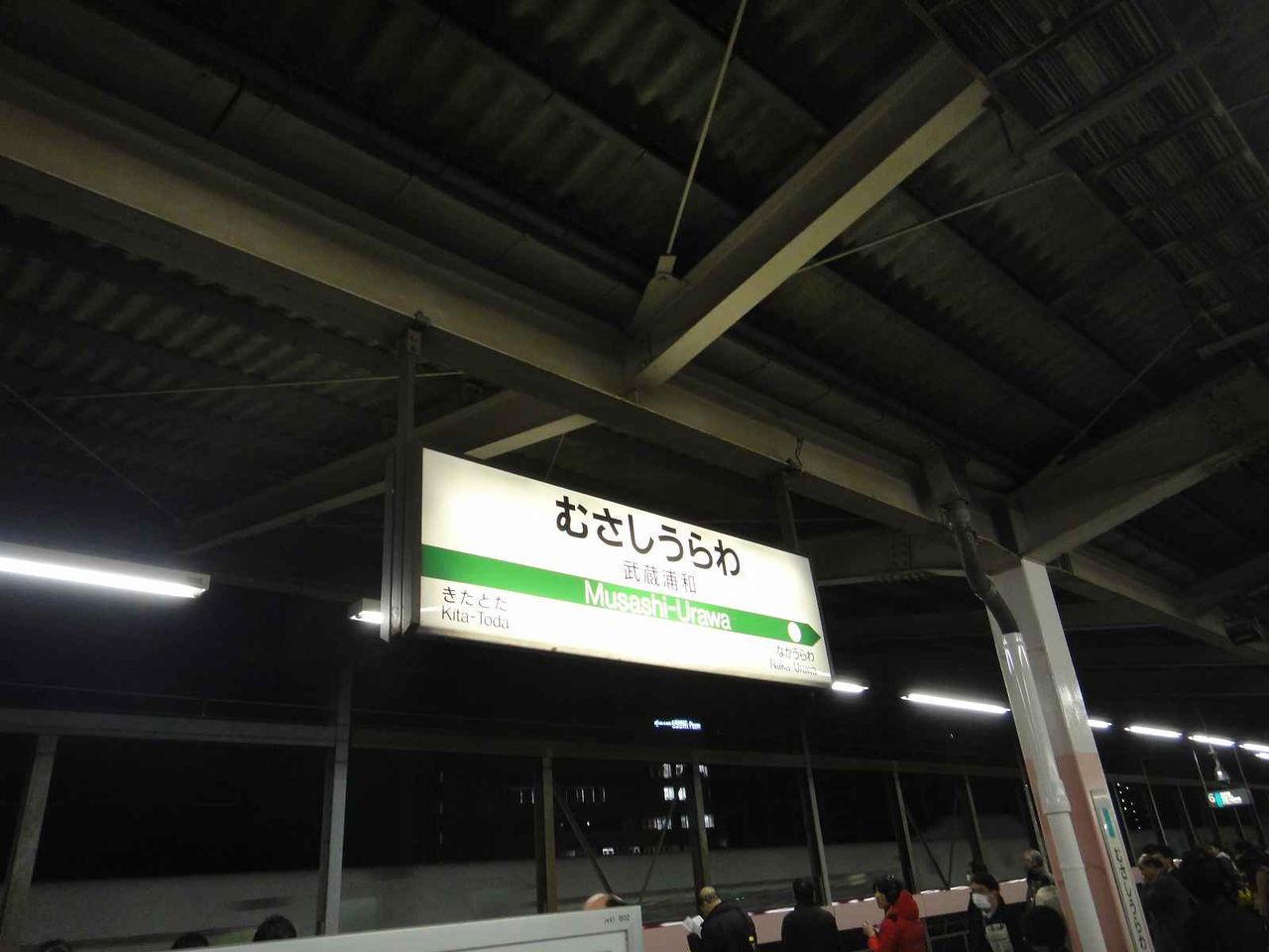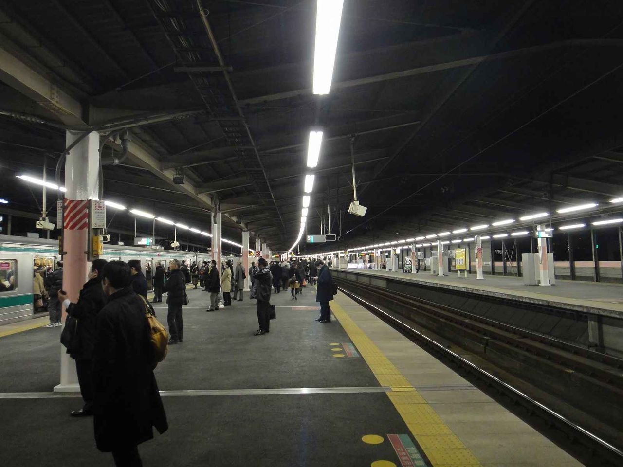 帰宅中の会社員で溢れる武蔵浦和駅ホーム上から駅改札へと移動し
