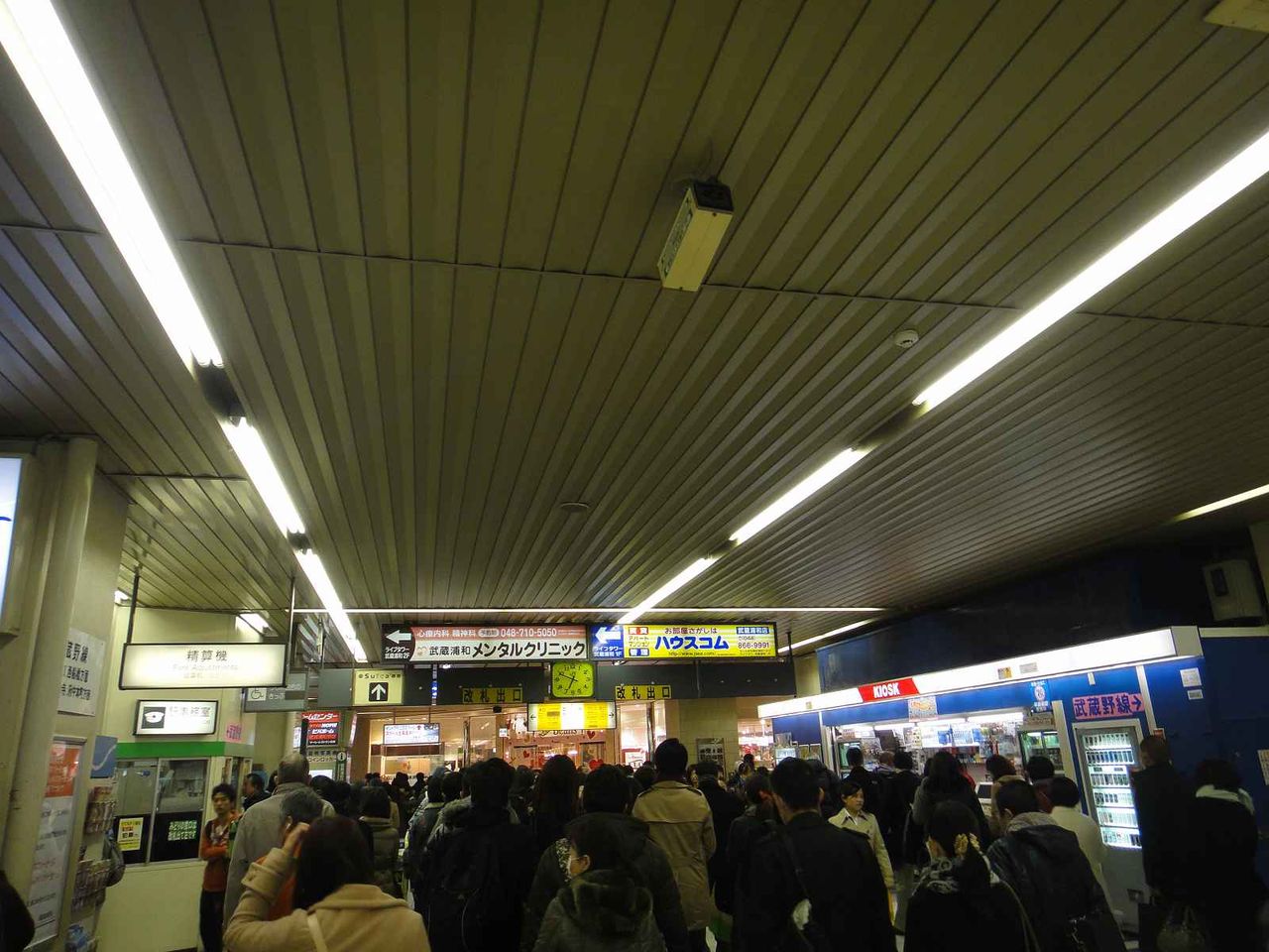 ものすごく混雑している武蔵浦和駅改札の様子が落ち着くのを待つため、少し横にそれてやり過ごし