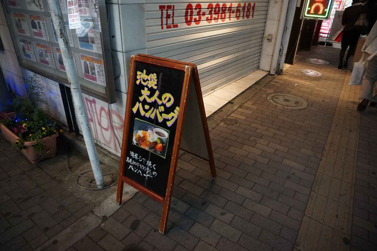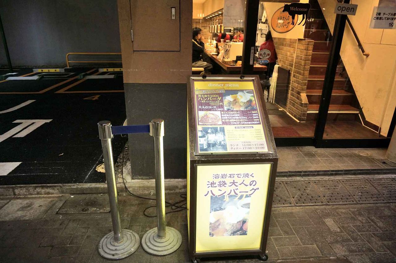 今回伺う池袋大人のハンバーグの看板が歩道上に置かれており