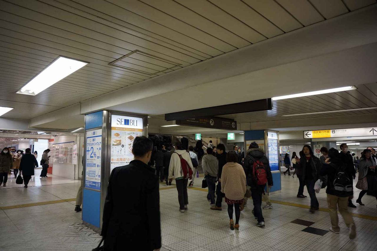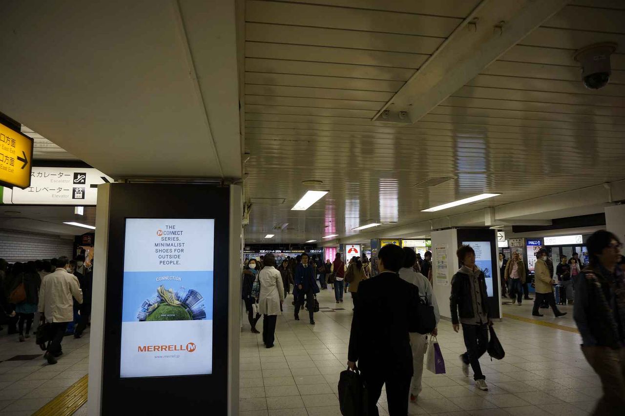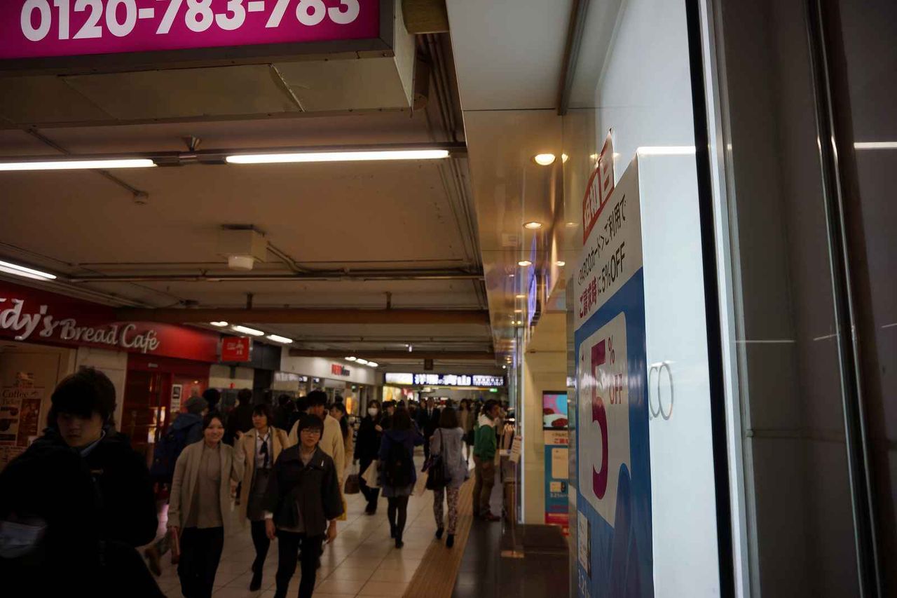 駅構内の連絡通路は沢山の人がひっきりなしに行き交っており