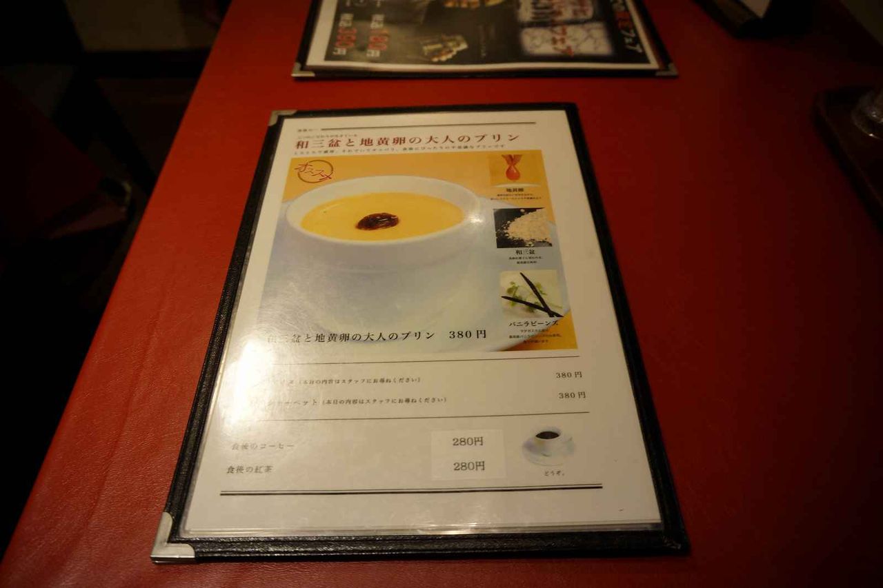最後に和三盆と地黄卵の大人のプリンでメニューは以上です。