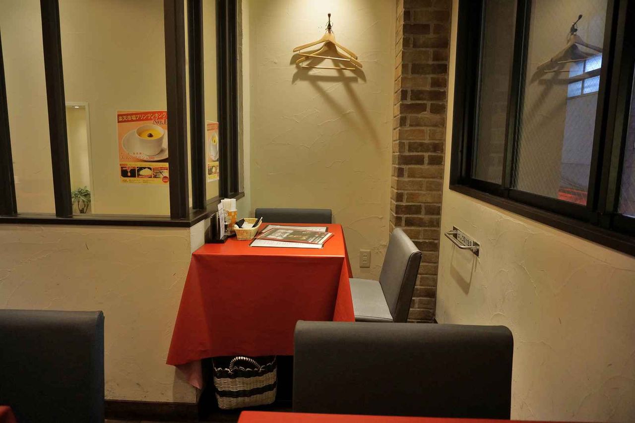 席の横に調味料や箸などがあるのを確認した後は