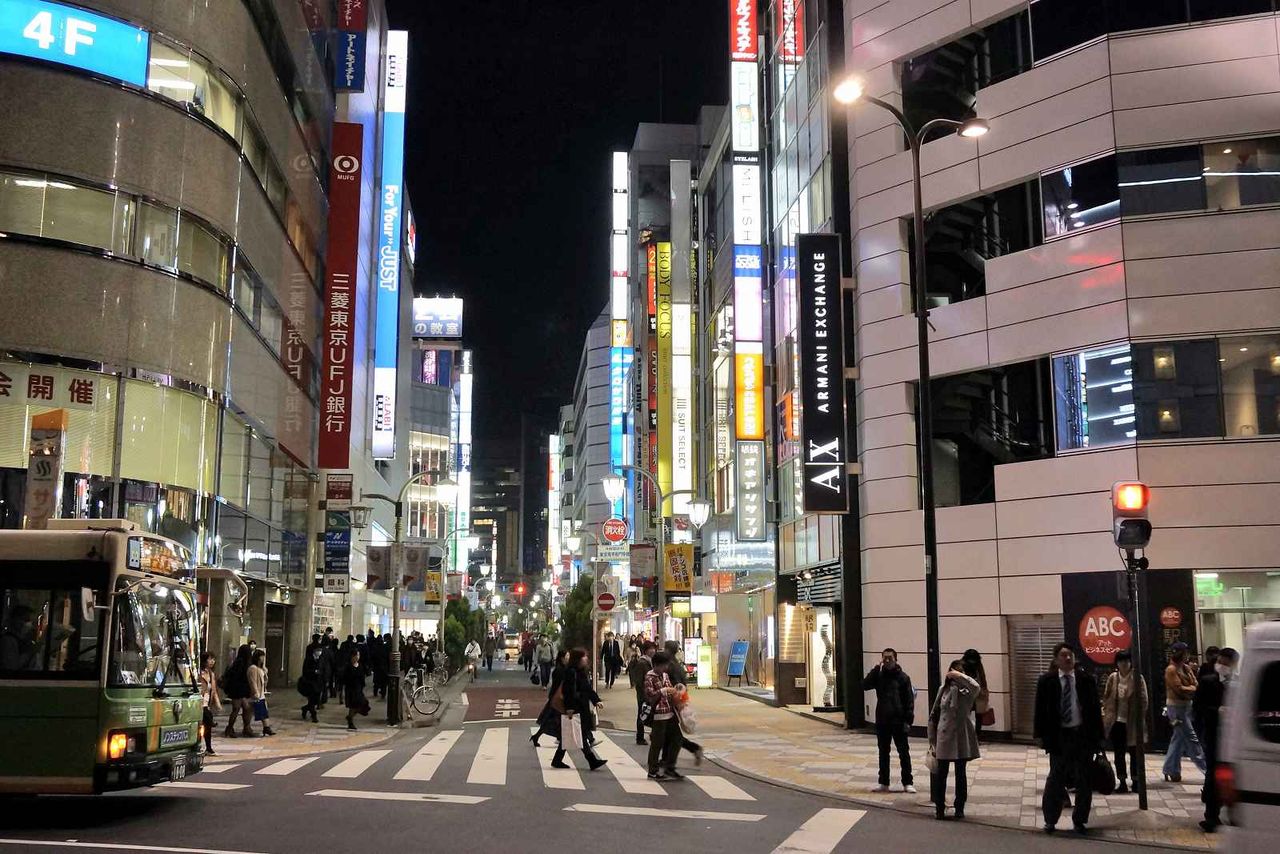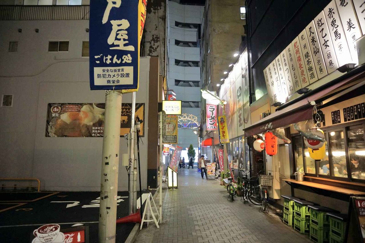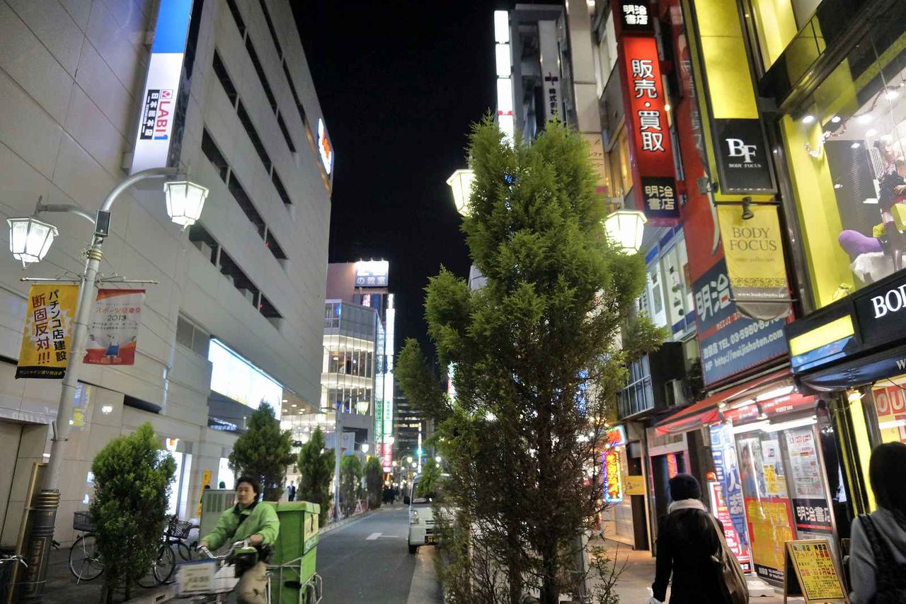 ヤマダ電機や中小の商店が並ぶ通りを歩いて行くと