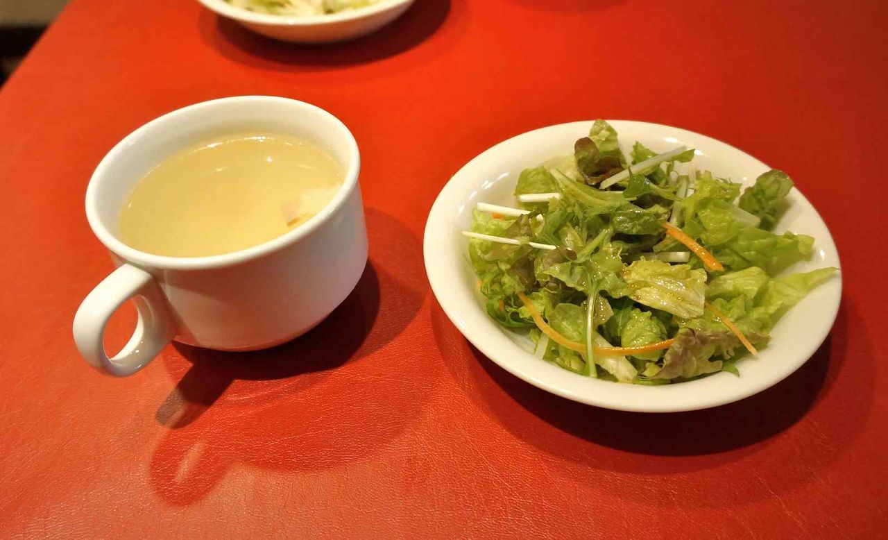 その後程なくしてスープ&サラダが目の前に運ばれてきました。