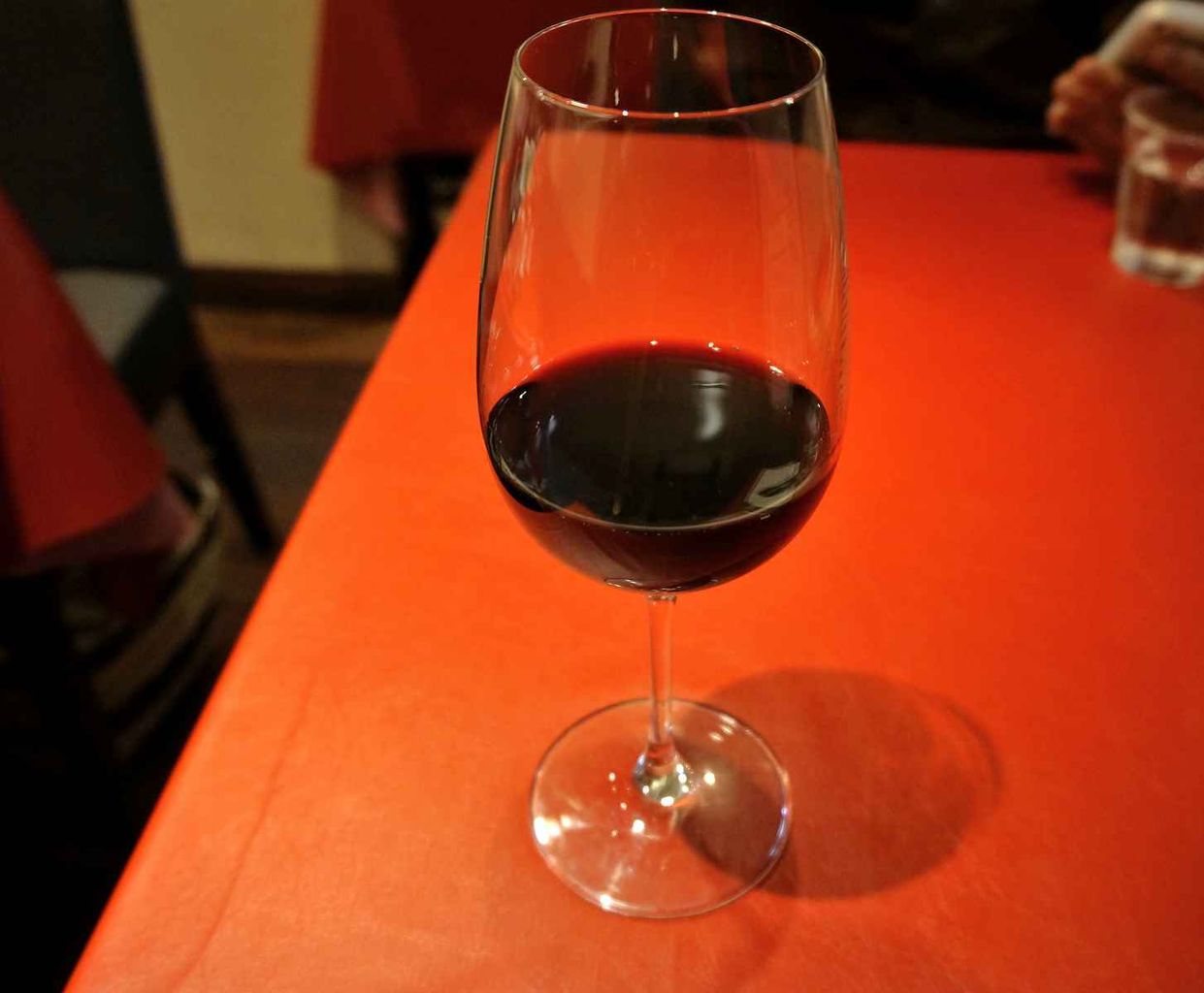 最初は大きなグラスに注がれたさっぱりとした赤ワインを飲みつつ