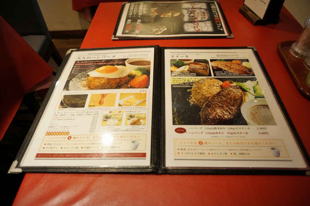 ここ大人のハンバーグは、黒毛和牛100%肉を使用している事がウリのハンバーグ店で
