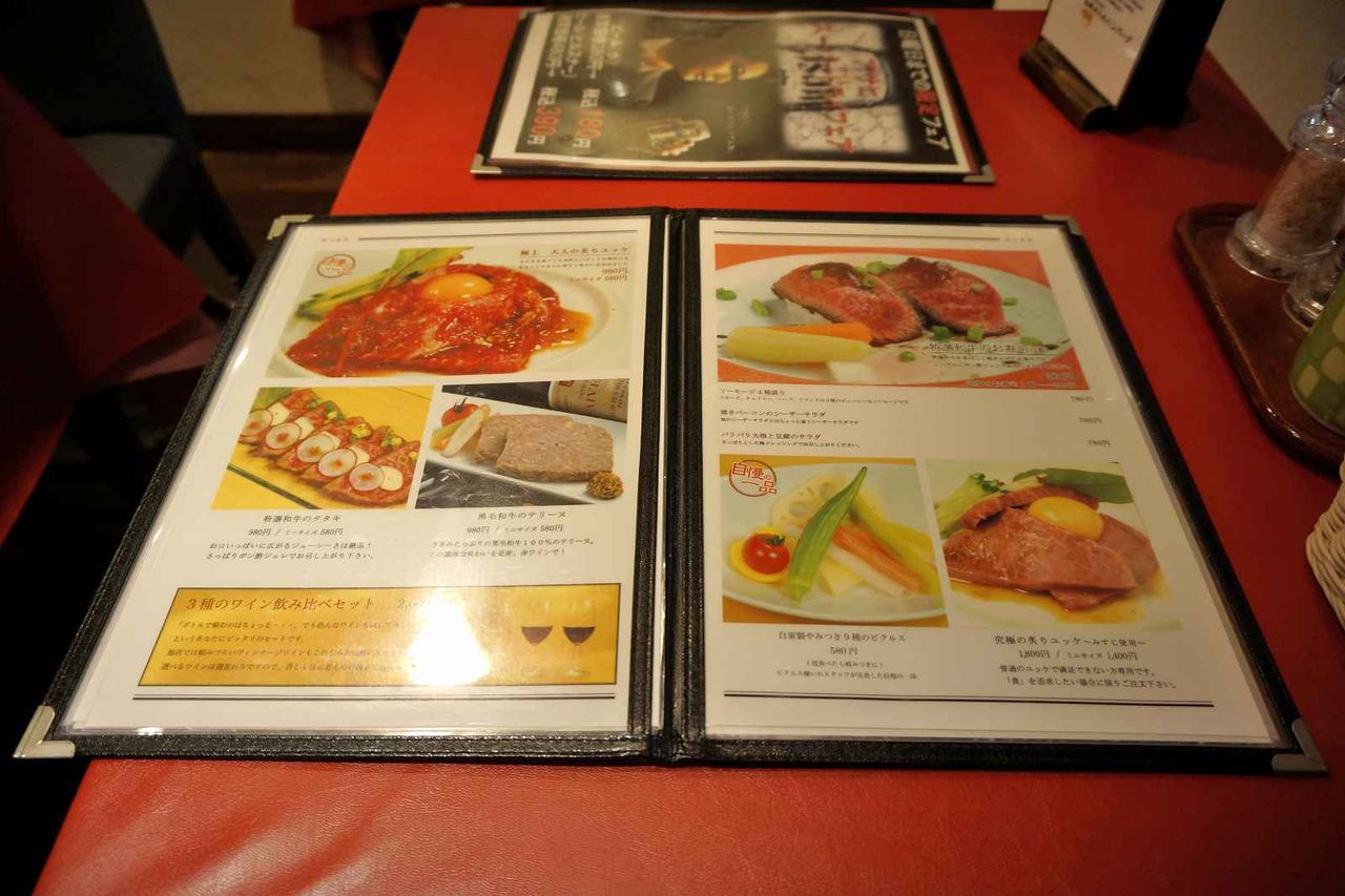 次のページには肉を使ったタタキやユッケなどの肉おつまみがあり