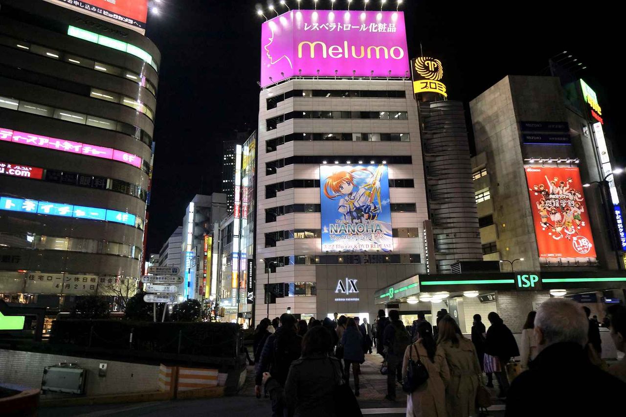 レスベラトロール化粧品の看板か魔法少女リリカルなのは The MOVIE 2nd A'sの看板の方向に進み