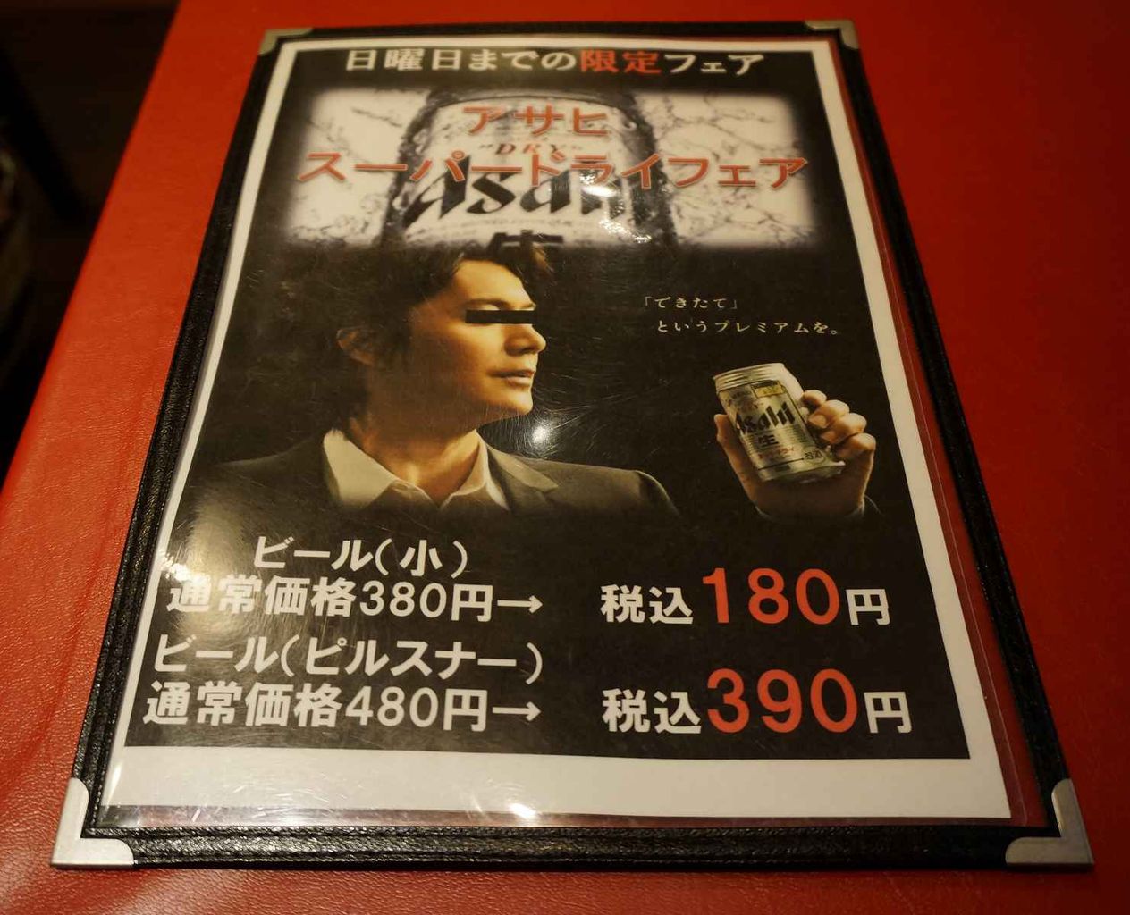 その後メニュー表を見ていくと、福山雅治風のpopのビールのフェアメニューに