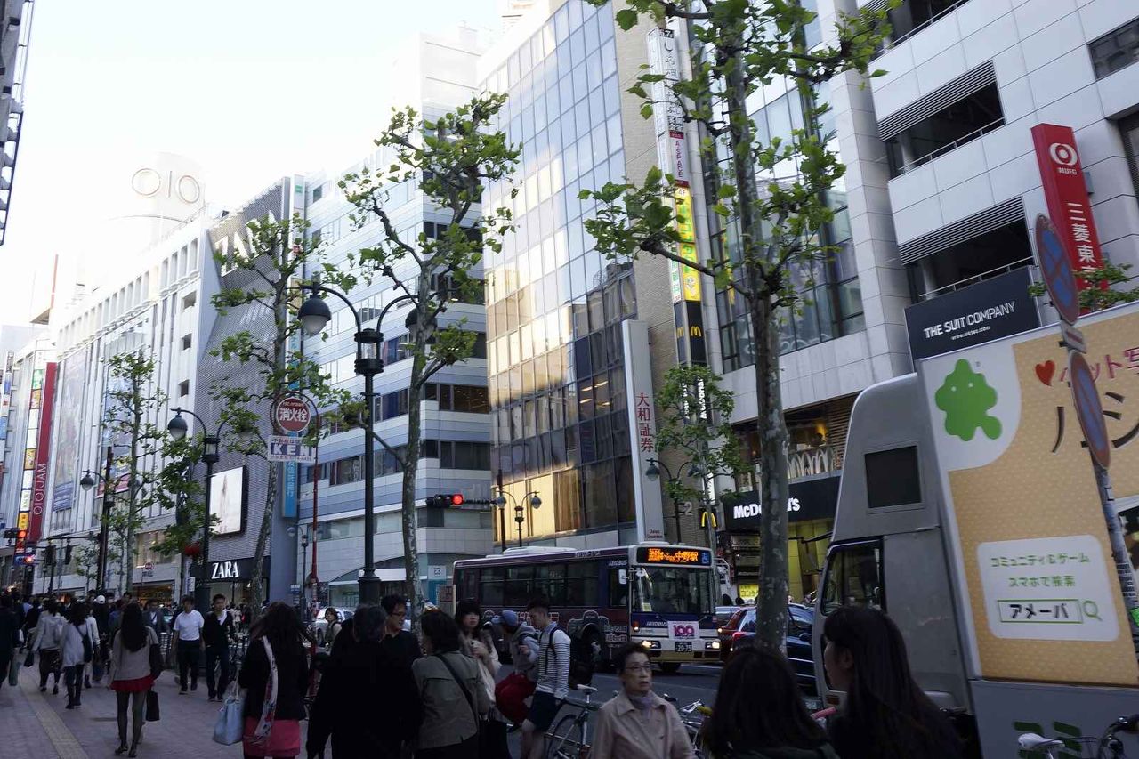 まずはZARAの横や西武百貨店の通りを北へと移動し