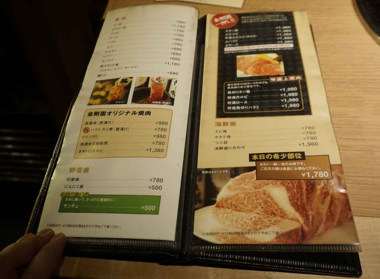 通常焼肉メニュー、金剛園オリジナル焼肉、野菜焼き、イチオシ特選&上シリーズ、海鮮焼き