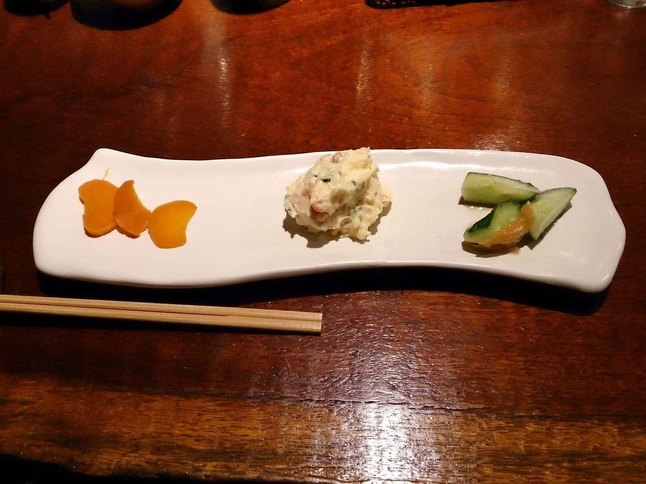 お新香やポテトサラダなどの前菜が運ばれてきましたが