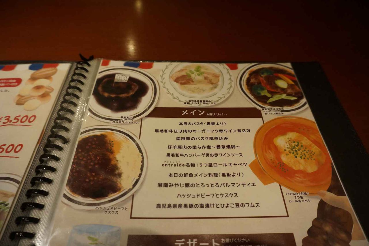 3500円版は前菜とメインから3品とデザートから一品にカフェメニューから1品選択出来