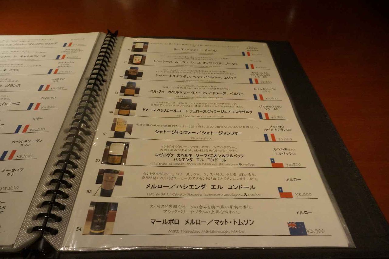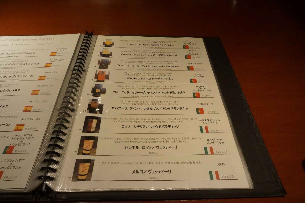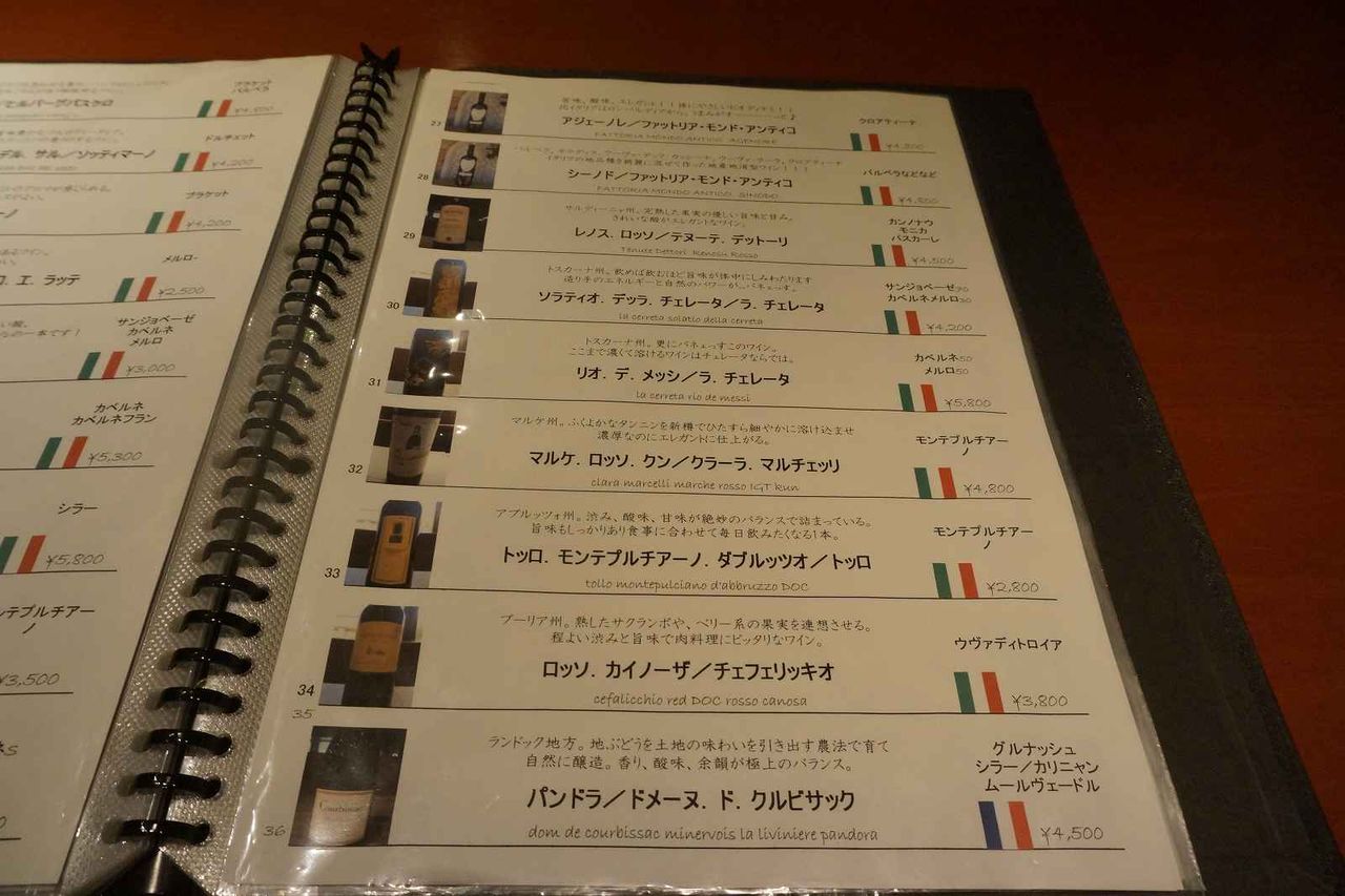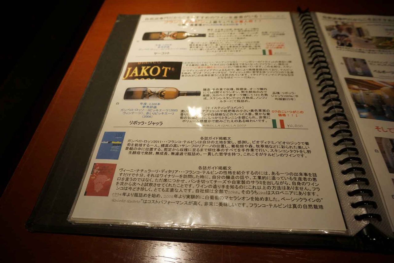 フランコ・テルビンの項目には別ページに渡ってワインメニューと