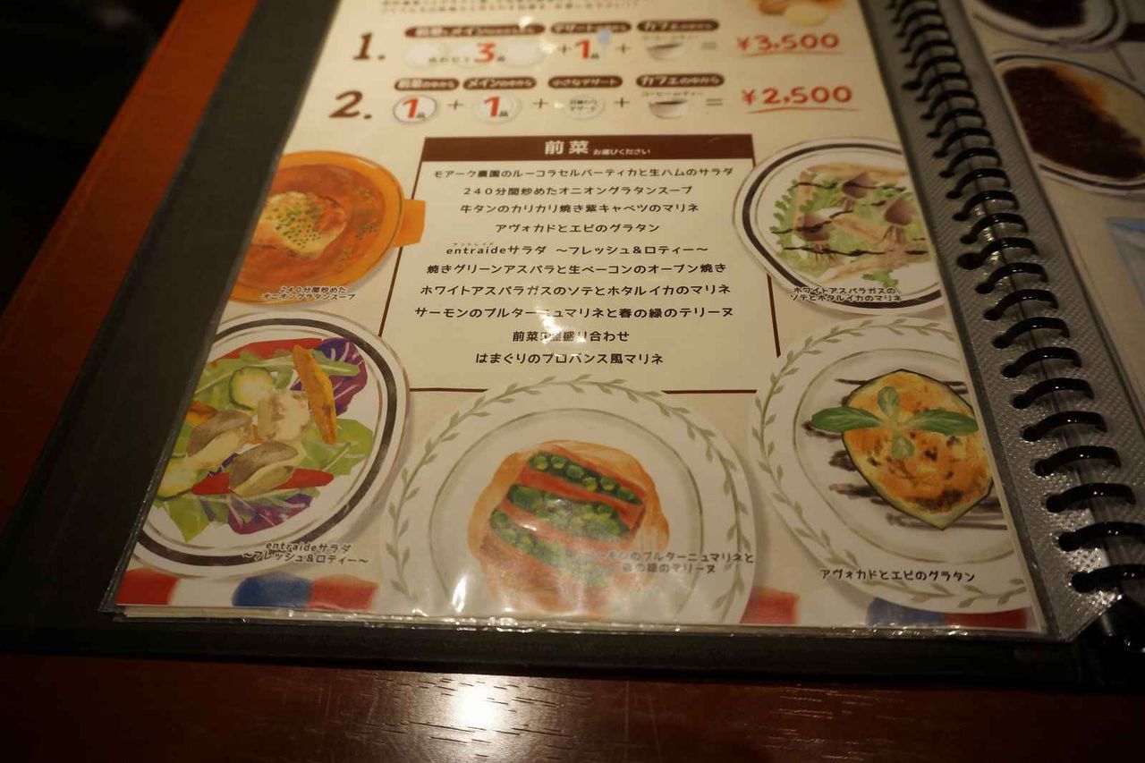 2500円版は前菜とメインから2品、小さなデザートにカフェメニューから1品選択が出来ます。