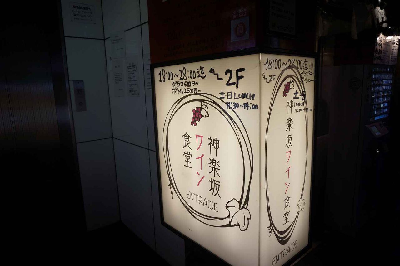 神楽坂ワイン食堂の看板は何となく~のアトリエシリーズの様な洒落たデザインで