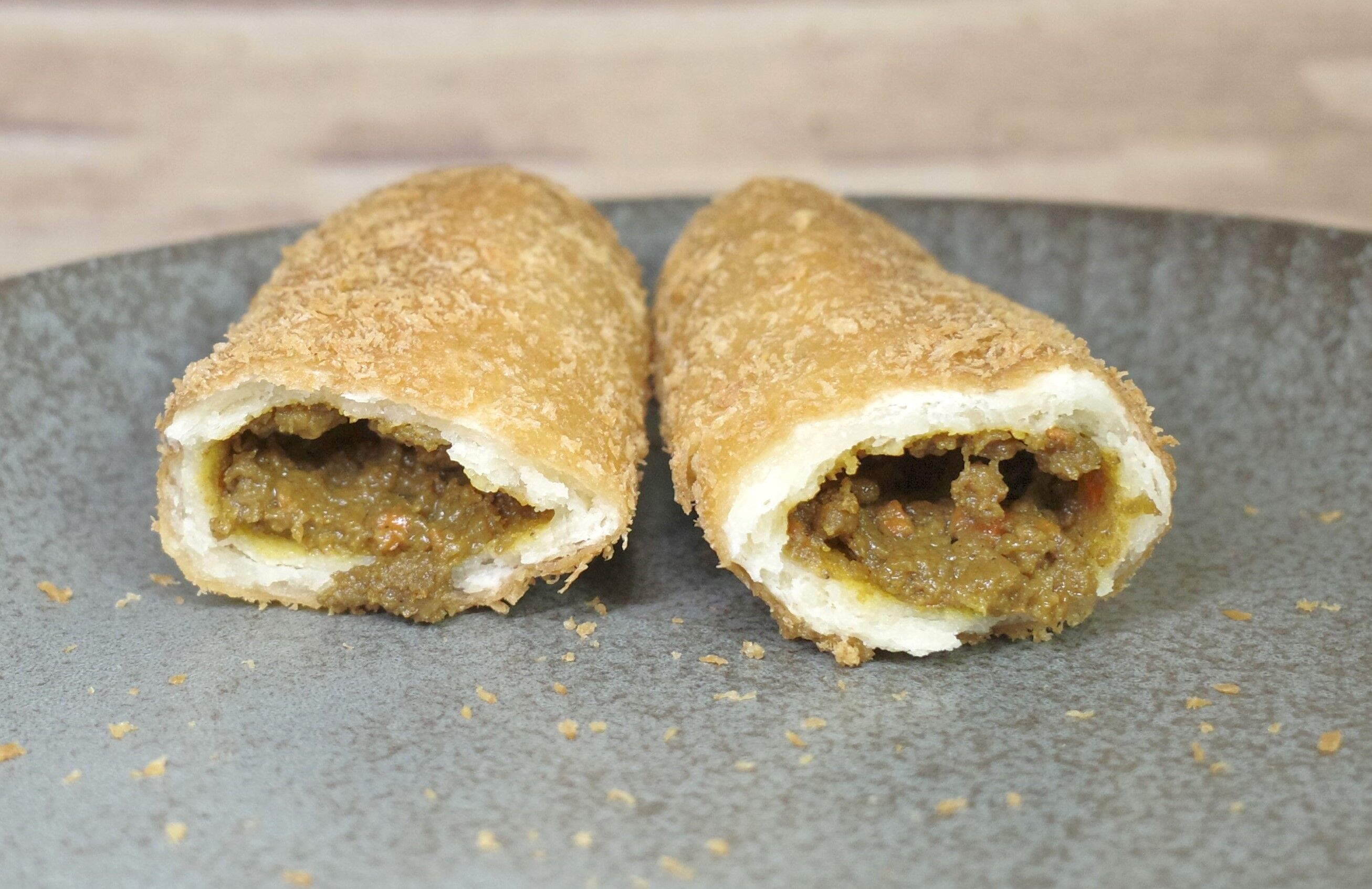 「仙台牛使用カレーパン」はカラッと揚がったパン生地の中に、ペースト状になって野菜の甘味、絶妙な塩気と香辛料の香り、仙台牛由来の旨味が交差してウマウマ!