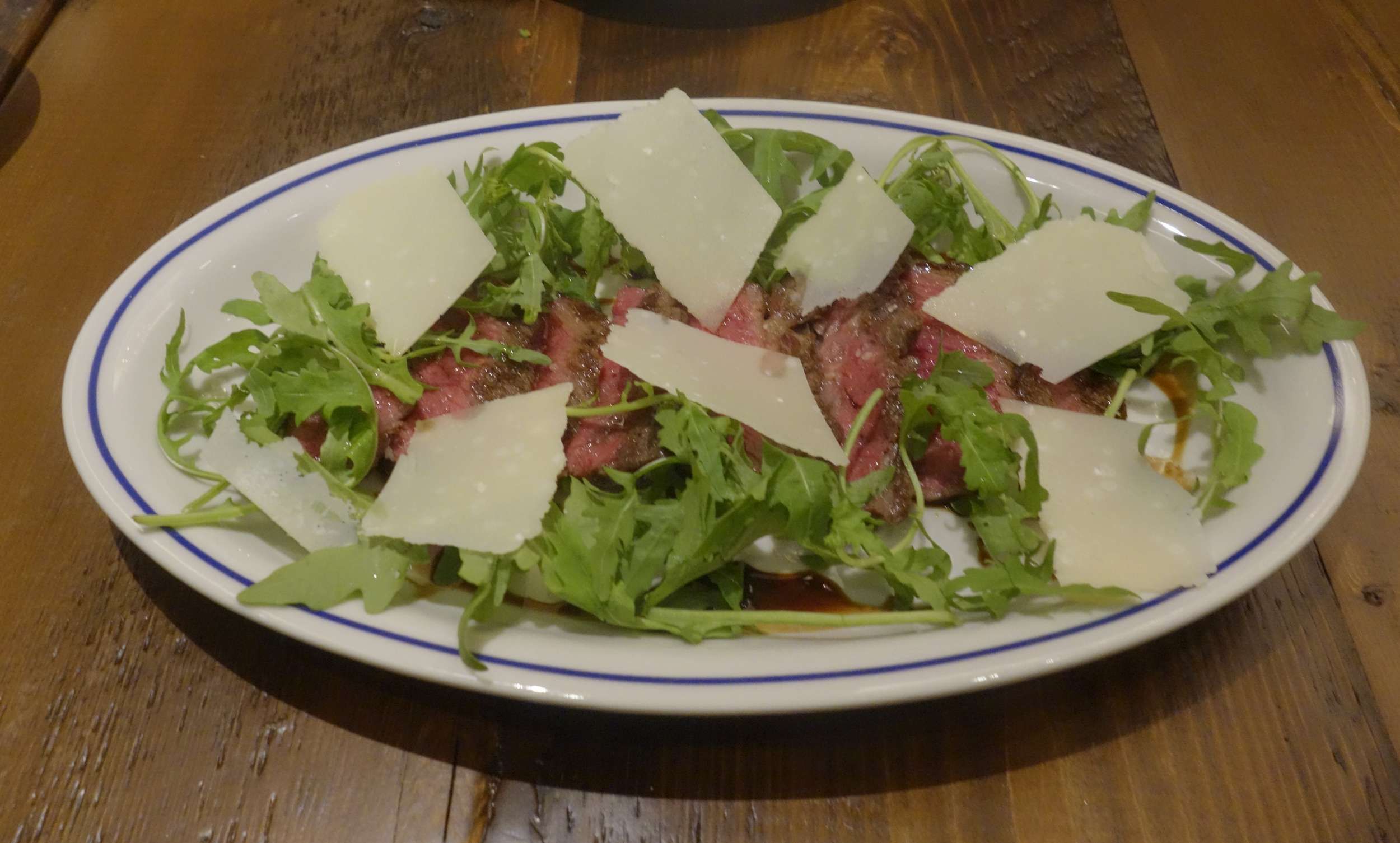 その後は宮崎産牛肩ロースのタリアータ ルーコラ、パルミジャーノ添え2400円を注文。
