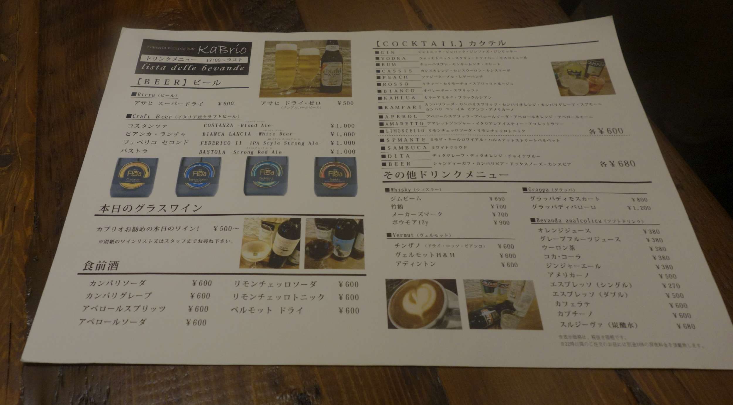今回トラットリアスタイルでピンサが楽しめるTrattoria Pizzeria Bar KaBrioへ行ってきました。