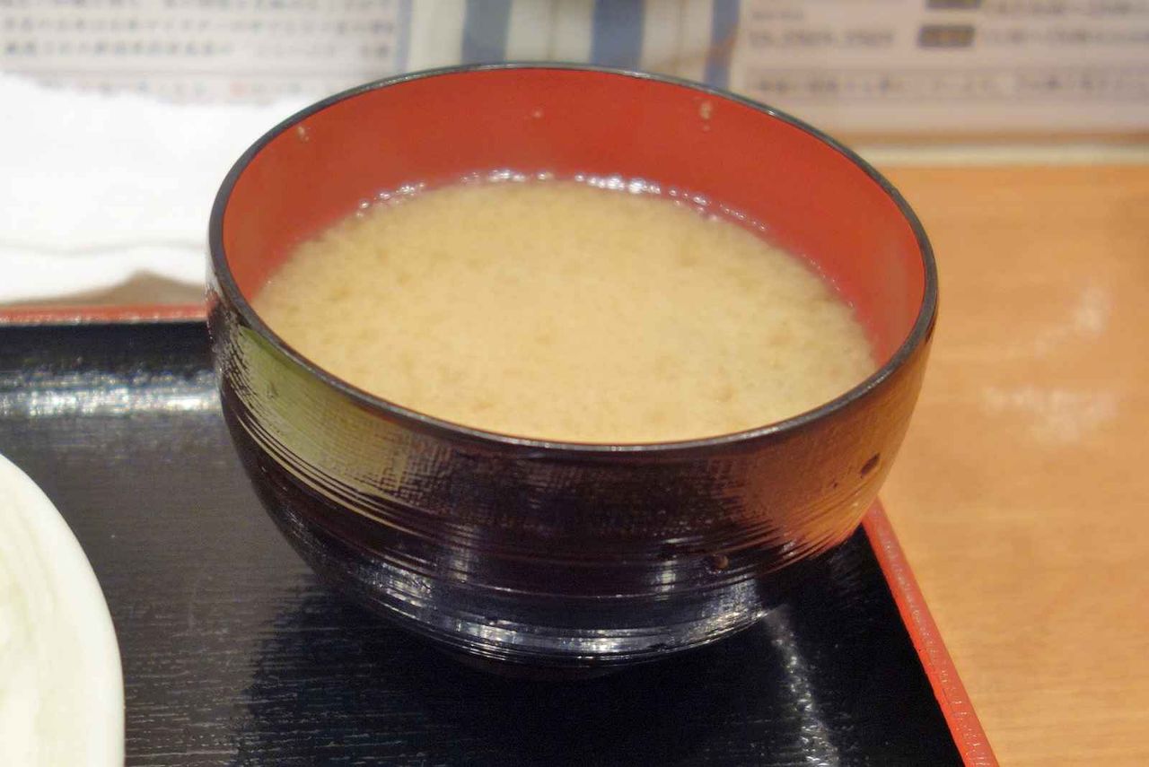生姜の風味が効いてさっぱりとした味わいの豚汁を先に一口食し