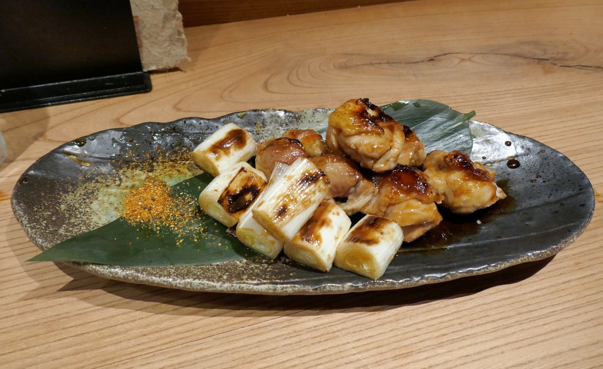 最後に「大山鶏の焼き鳥(たれ)」780円を注文。このお店の焼き鳥は串が無いのが特徴とのことです。