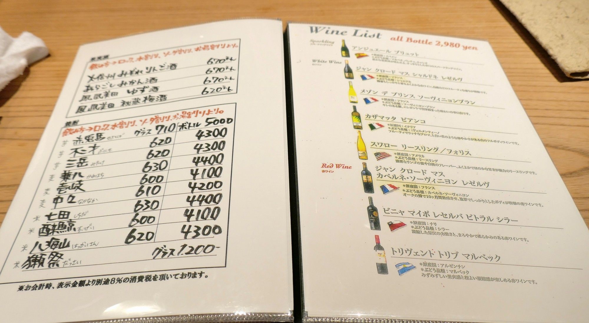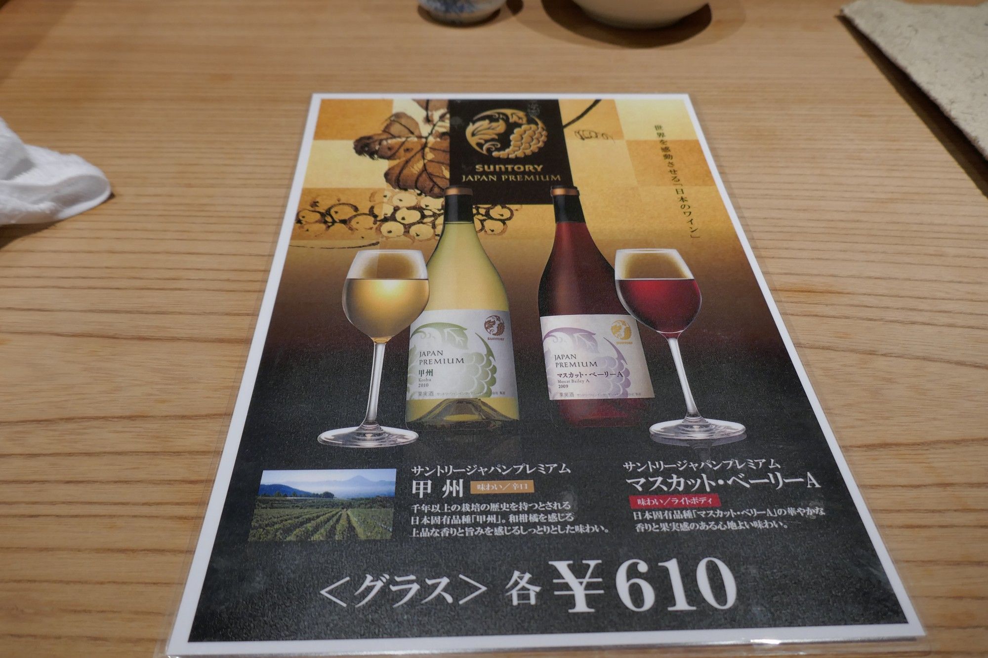 まずは別紙メニューを見ていくと、甲州ワイン