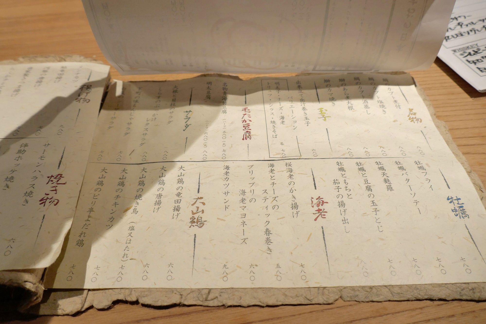 名物、たまご、豆腐、サラダ、牡蠣、海老、大山鶏メニューで料理メニューは以上です。