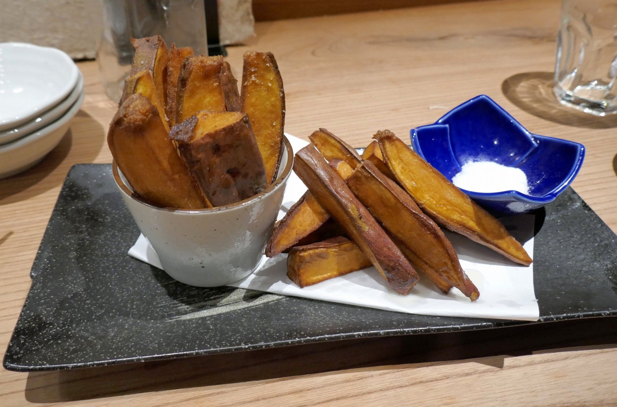 箸休めに注文した「安納芋のスティック」480円は