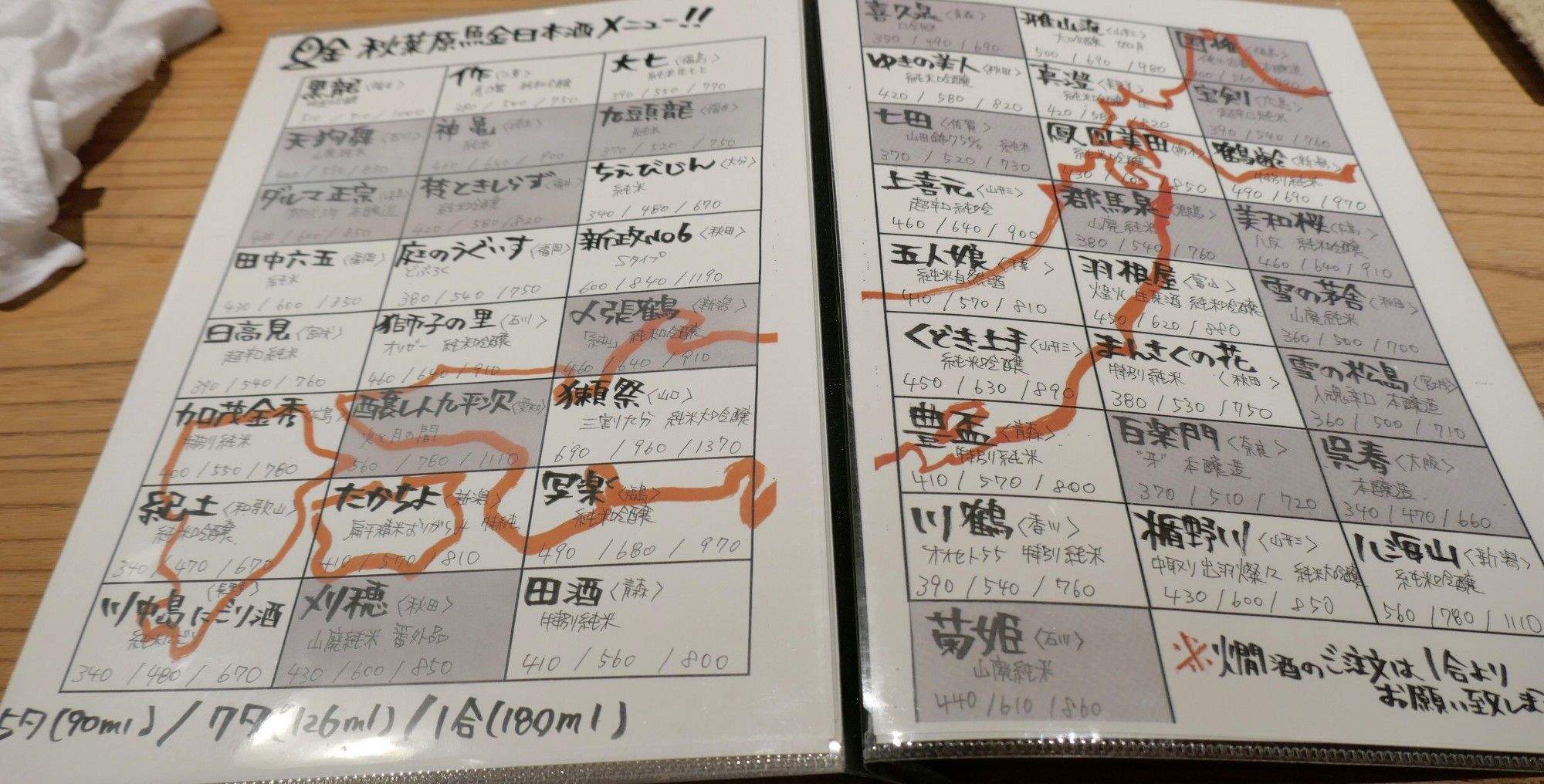 秋葉原魚金オススメ日本酒メニュー