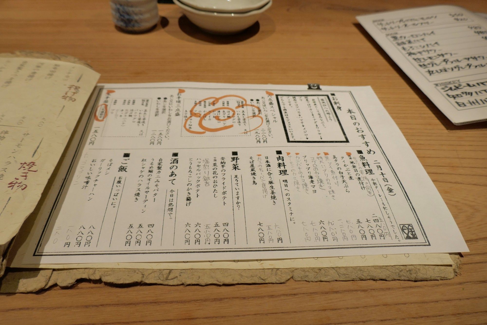 本日のおすすめな刺盛り、魚料理、肉料理、野菜料理、酒のあて、ご飯メニュー