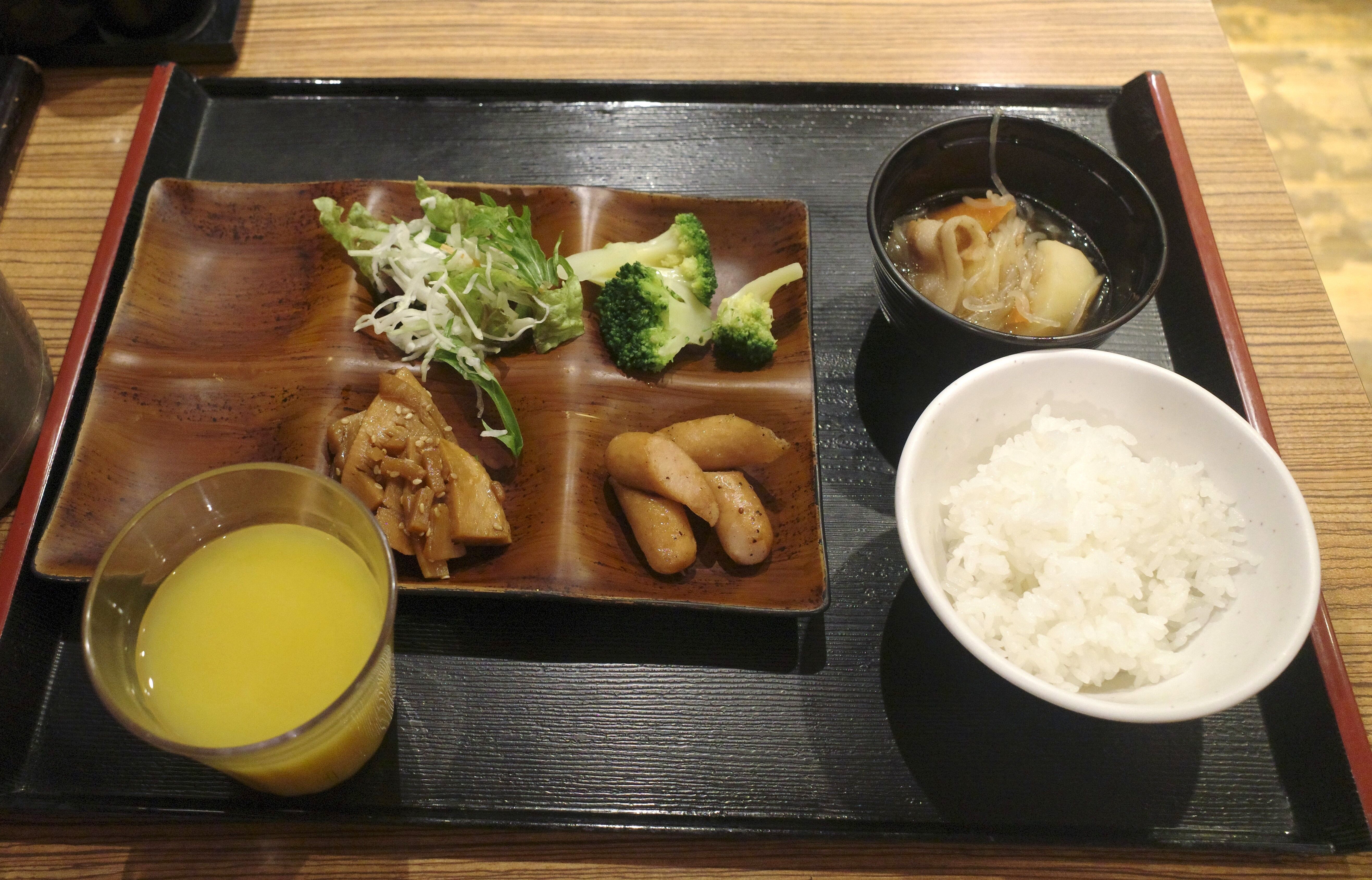 ということで、サラダとお肉、ご飯、汁物をまずはGET!味もまんべんなくナイスです!