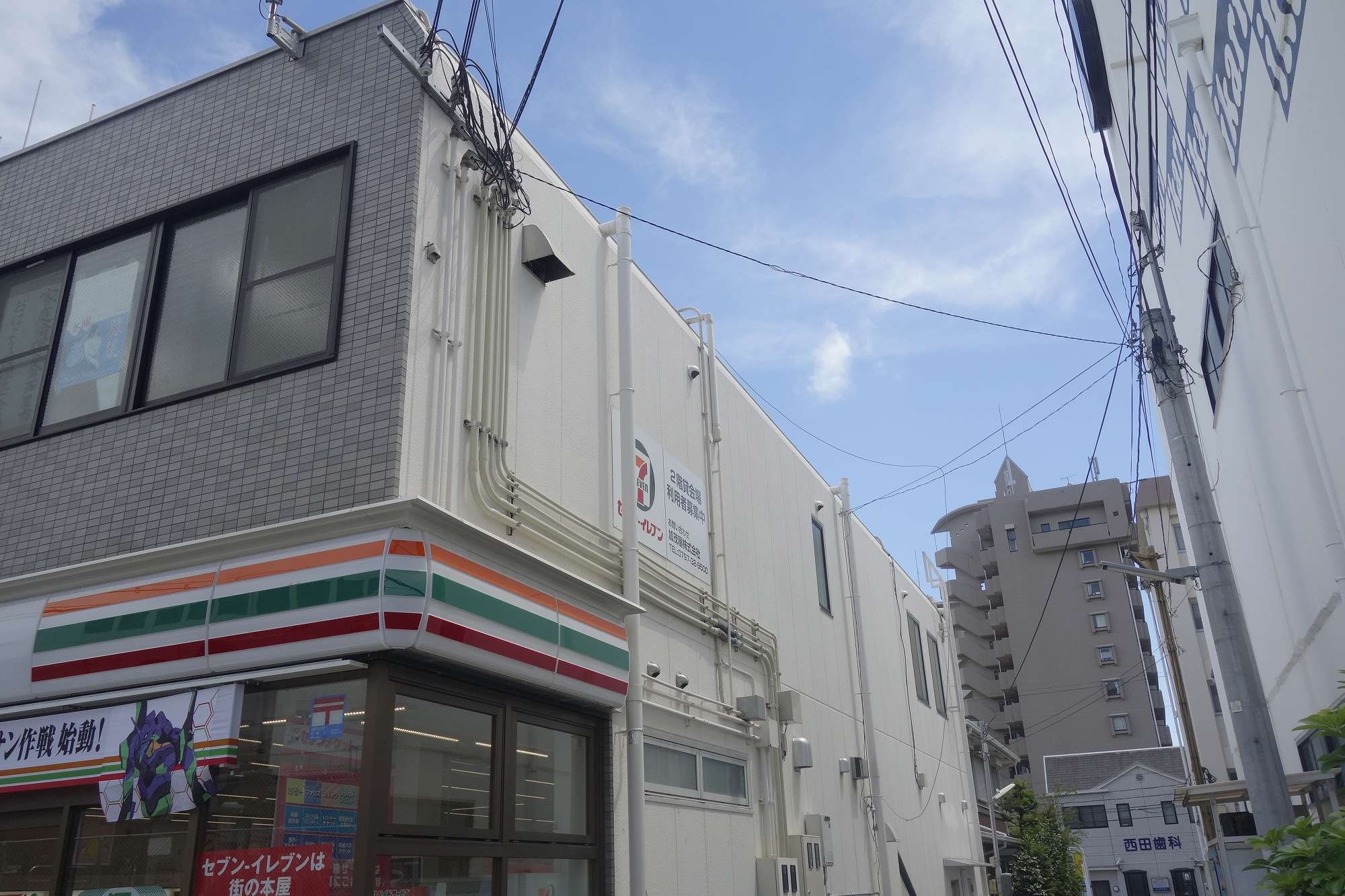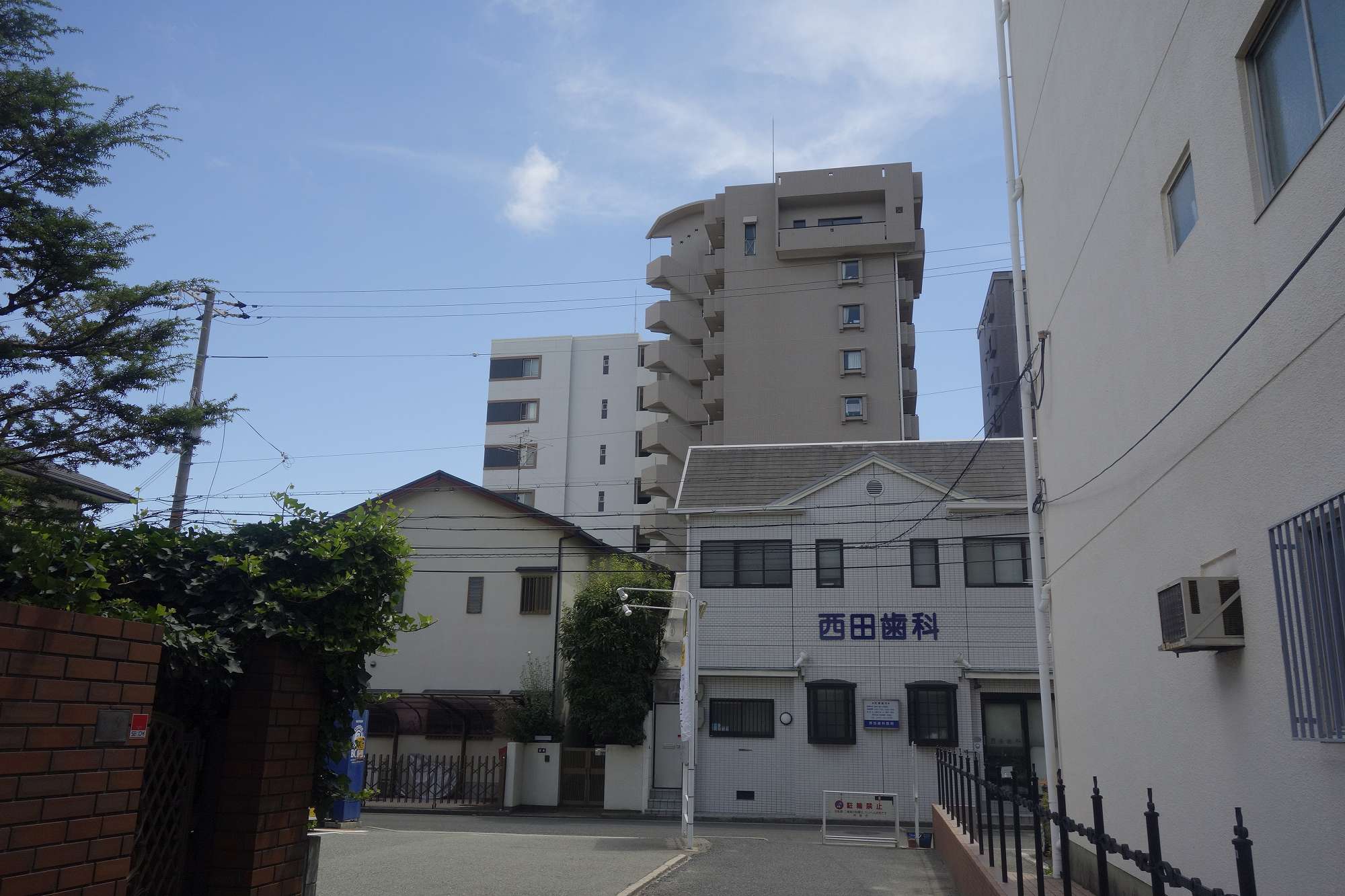 コンビニ脇の通路を抜けて、正面に見える西田歯科の通りを左に曲がり